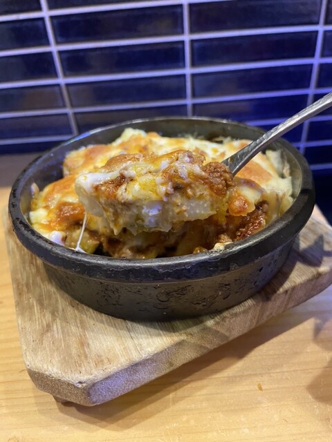 そして、お待ちかねのもんじゃ焼き!友だちと迷った結果、イタリアのトマトチーズもんじゃを選びました。真っ黒のイカスミで驚きのビジュアル、どんな味がするのかワクワク。トマトの酸味とまろやかなチーズの組み合わせは王道だけど、もんじゃでは食べたことなかった味!!エビやタコなどの海鮮も入ってて、少しずつ水分が蒸発して味が濃くなっていく感じで徐々に海鮮の旨みが伝わってきます♡