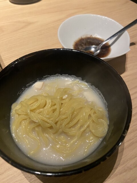 〆のラーメンは、店員さんから1人前でも大丈夫ですよとお声がけいただきましたが、友だちと「まだいけるわ…」となりちゃんと2人前ご用意いただきました(笑)ラーメンを鍋に追加する前に、豆乳ベースの出汁を追加で入れてくださって味変。〆もしっかり美味しい!さらに味変アイテムとしてマー油をご用意いただきました。少しマー油を加えて食べてみると、ごま油の風味と程よいニンニクが加わってより一層美味しくなりました。