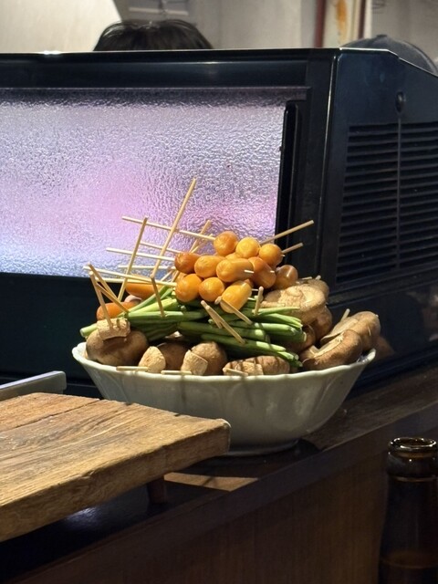 広々とした店内には、お座敷、テーブル席、そしてカウンター席と様々なタイプがあり、今回はライブ感あふれるカウンター席へ。目の前で調理される串焼きを見ながら、会話も弾みます♪