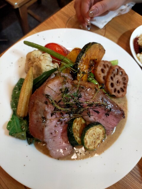 とうもろこしの網焼きも、犬鳴豚のローストも、付け合わせのグリル野菜すらも、全部美味しい。火入れが完璧です。