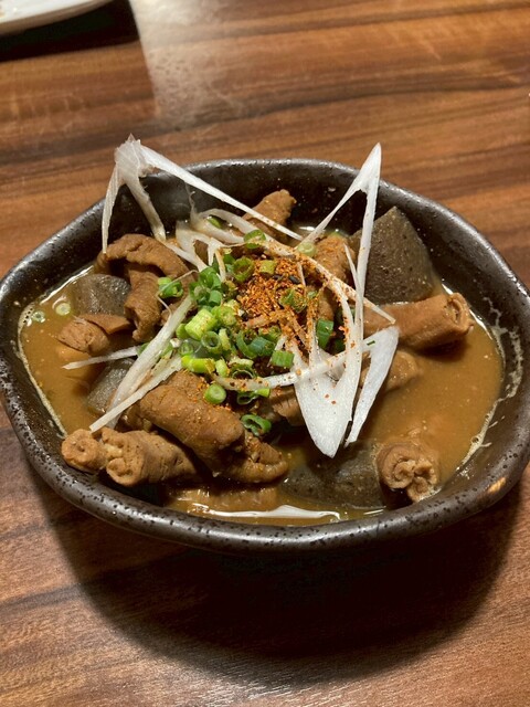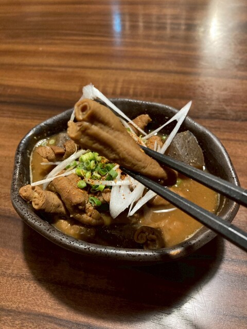もつ煮込みは、もつの旨味がしっかり染み込み、やわらかく煮込まれた食感が絶妙で、食べるたびに満足感があります。