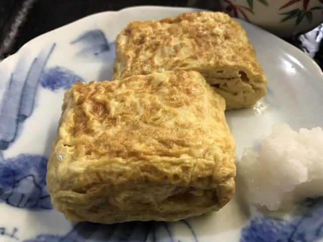 卵焼きは外は焼き目があるが中はほわっとしていて、大根おろしがあいます。