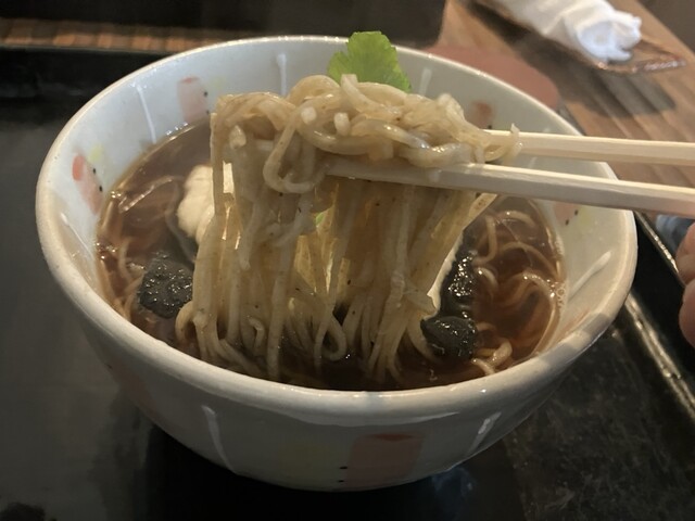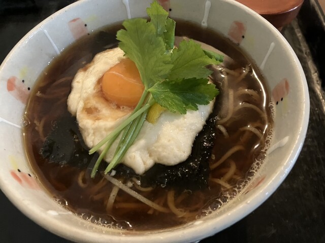 温かいおろしそばは、とろろに卵が落としてあり、とろろと蕎麦、とろろと卵と蕎麦という具合に楽しめます。
