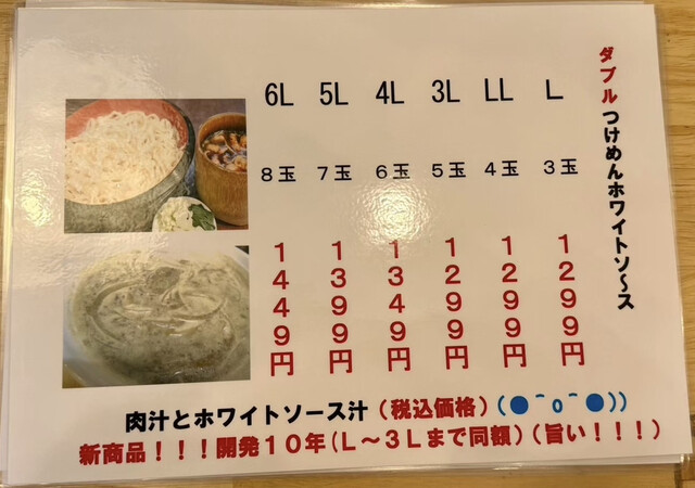 肉汁天付つけめん2Lを注文。