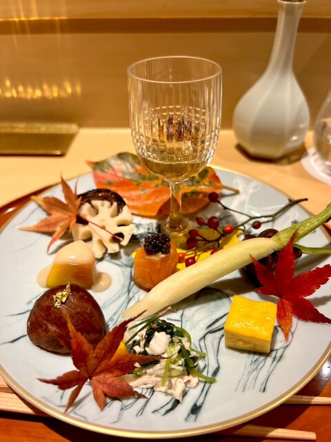 銀座しのはら秋の定期訪問。毎度しのはら大将の季節や暦と食材のお話を聞いて達磨や邪気払いの菊と季節をイメージされたお料理の始まりです。