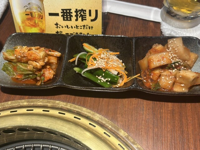 タン塩、ハラミ、和牛カルビ、ギアラ、マルチョウ、カルビクッパ、塩キャベツ、キャベツの千切り、ビビンバ、石焼きビビンバ、上レバーを注文