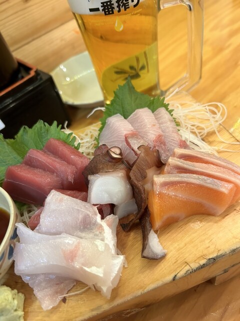 生ビール1杯¥350 産地直おくまん刺身盛¥720