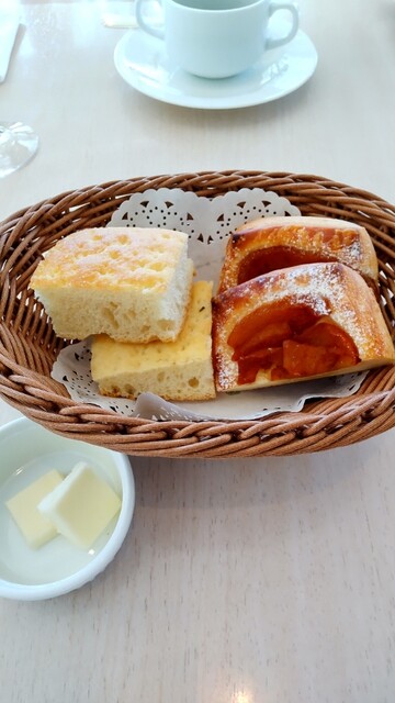 小さな籠に乗っていて籠が空になると違う種類のパンを持ってきてくれました。
