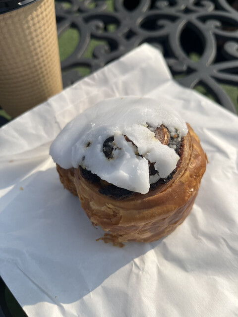 チョコレートの入ったパンは崩れやすいので持ち歩き気をつけて下さいと言われただけあって、何層ものパイの層がサクサク!ふわっと美味しい!