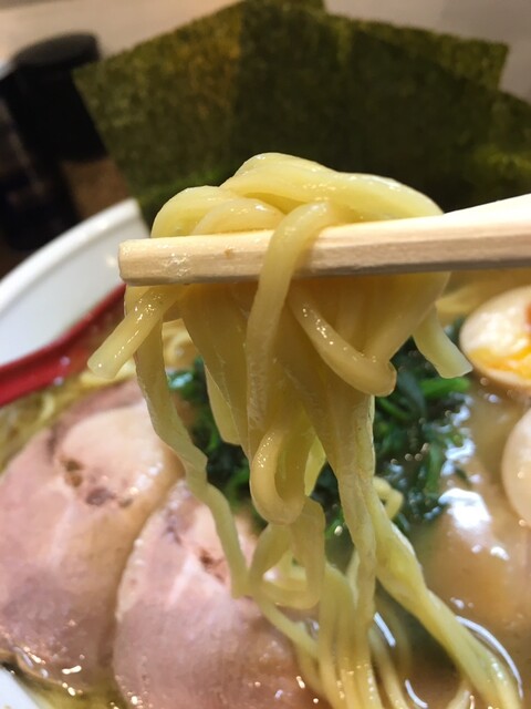 麺は中太のストレートでモチモチとした食感がスープとよく合います。