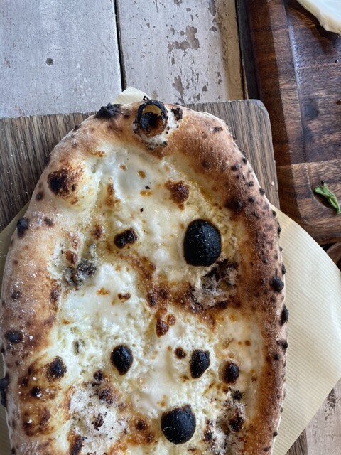 一品目は自慢のチーズが選べる。4種からカマンベールを選択。白カビも綺麗だしクセが少なく本当に美味しい。二品目バーニャカウダ。新鮮なお野菜が瑞々しくオイルと合う。三品目メインのお料理を選ぶ。今日はピザやパスタ、チーズご飯、STAUBの蒸し鶏の4種で迷いに迷ってピザを。蔵焼きと呼ぶらしい。これも勿論ウマウマ。