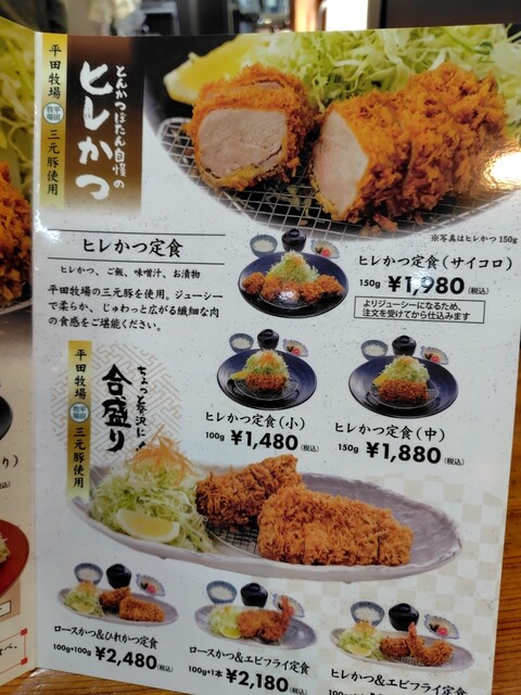 自分が食べたのがヒレかつ定食(小)1480円と海老フライ880円で2360円です