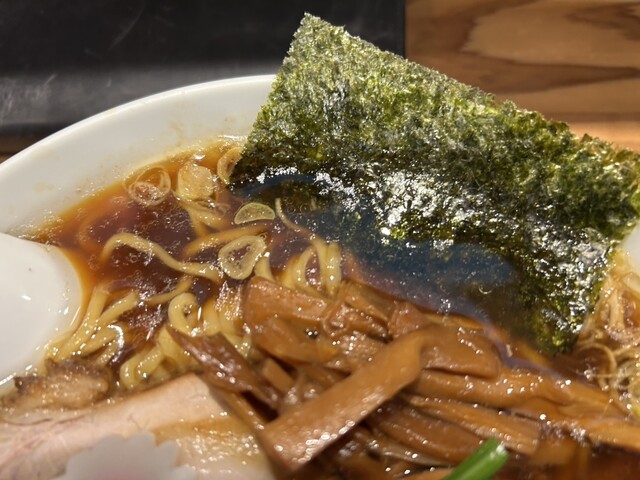 メンマ、チャーシュー2枚、青味、海苔、ナルトと王道トッピング