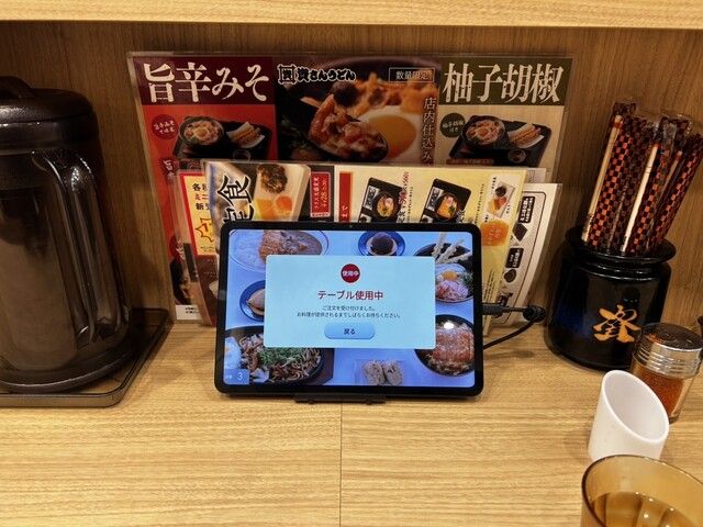 とりあえず何もわからなかったので、卓上のメニューを確認、注文は備え付けのタブレットで行うみたい。
