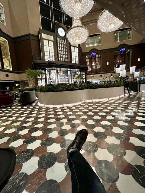 諦めて外へ出て取り敢えず、近場のハイエットのロビーで寒さを凌ぎ時間を潰す。こういう所は都会住みの知恵❗️