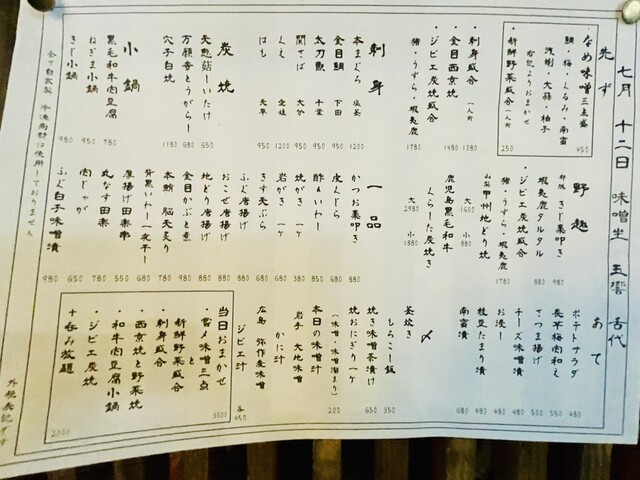 当日おまかせは、店自慢の味噌にはじまり、新鮮な野菜や魚介類、そしてジビエをたのしめる。それぞれが持つ素材の味は、こだわりの調理法や味噌によって最大限引き出されている。