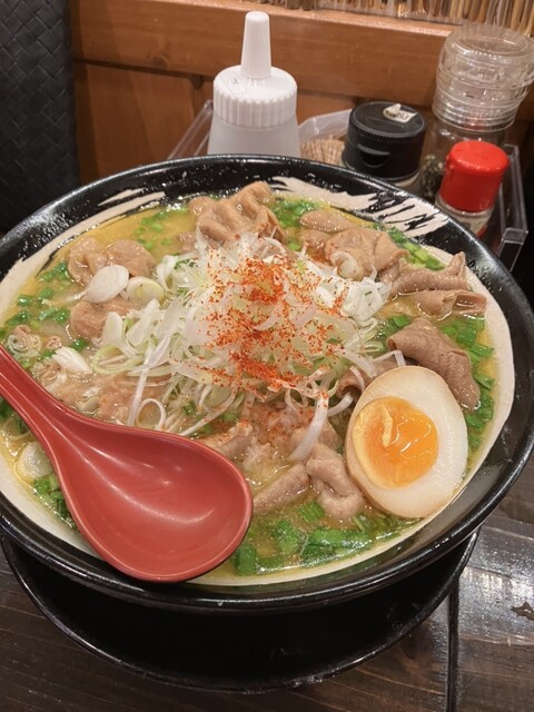 牛モツの甘い出汁が豚の背脂とマッチして美味すぎる
