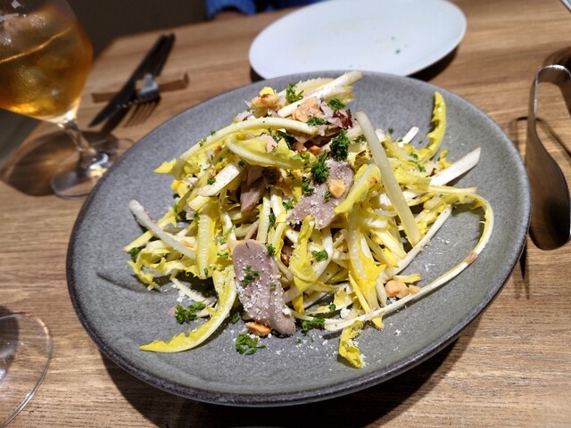 西洋タンポポと仔羊タンとヘーゼルナッツの冷前菜