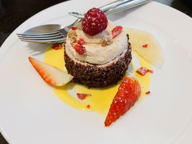 チャコ色といちごの赤が映えるこれぞクリスマスメニューと言う一品です。