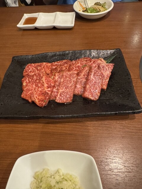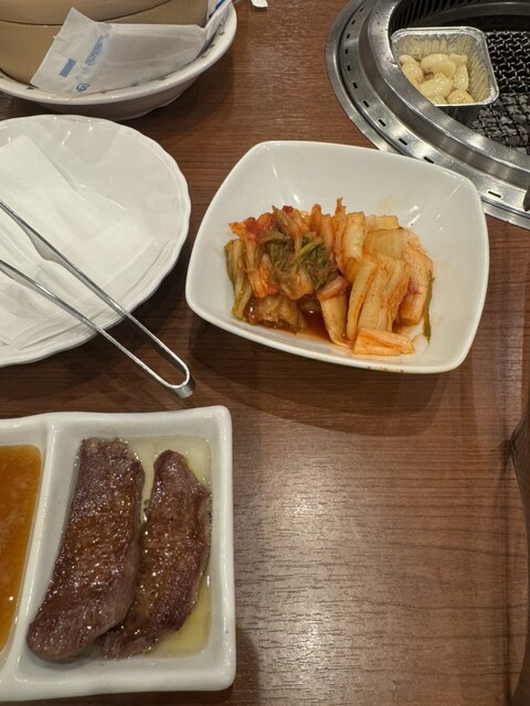 和牛の上カルビと和牛の特上カルビを注文、食べ比べて上カルビの方が食べやすいと言う事で上カルビを追加注文他にサンチュ、キムチ、ニンニク焼き、バターコーン、などなどを食べました