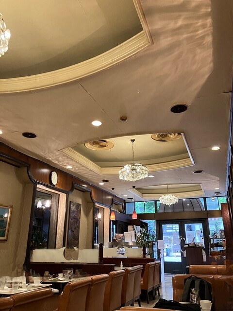 駅から少し歩いた人気店。ケーキセットでモンブランとホット珈琲のパウリスタオールド、スコーンとホットティーのアールグレイをチョイス!モンブランは大粒の栗とマロンクリームの深いコクと甘さが楽しめます。スコーンはクリームチーズとジャムが付きます。食べやすい温度に温めて提供されるのでグッド。クリームチーズの淡い酸味とジャムの強い甘味が楽しめます。パウリスタオールドは深煎りのストロングな味わいに魅了されます。アールグレイは香り豊かで爽やかな味わいに落ち着けます。お店は1階と2階があり、今回は2階へ。明るく広い店内はゆったりした雰囲気でBGMはジャズ。リー・モーガン“The Lady”のトランペットに痺れます。壁には、パンフレットでも紹介されている大きな絵が飾られていて歴史に触れることができます。レトロな喫茶店で時代を感じる深い味わいを堪能することができました。