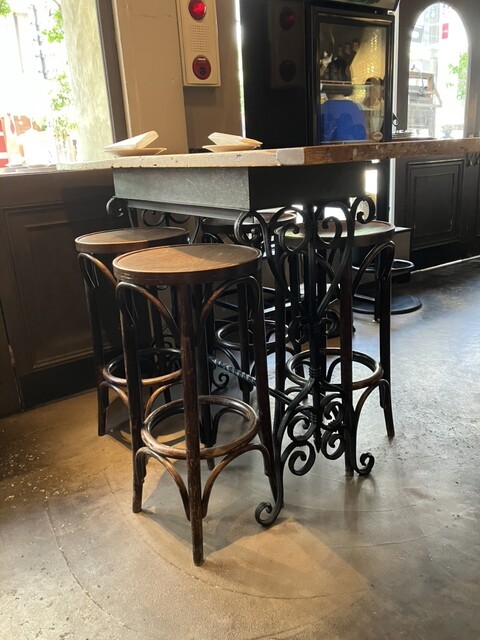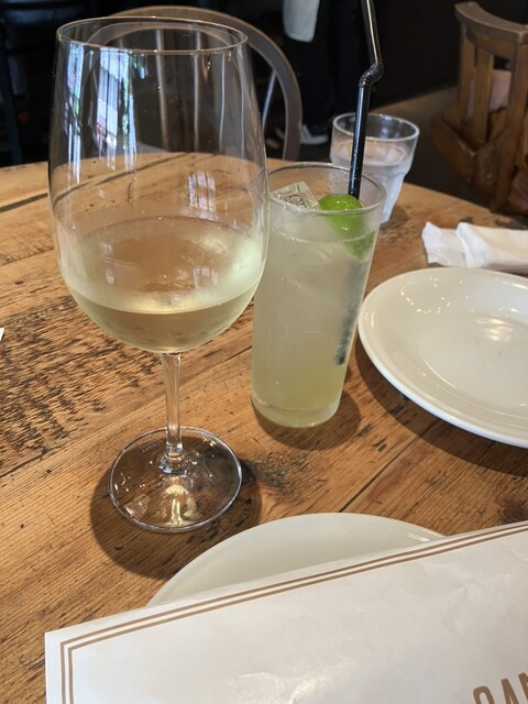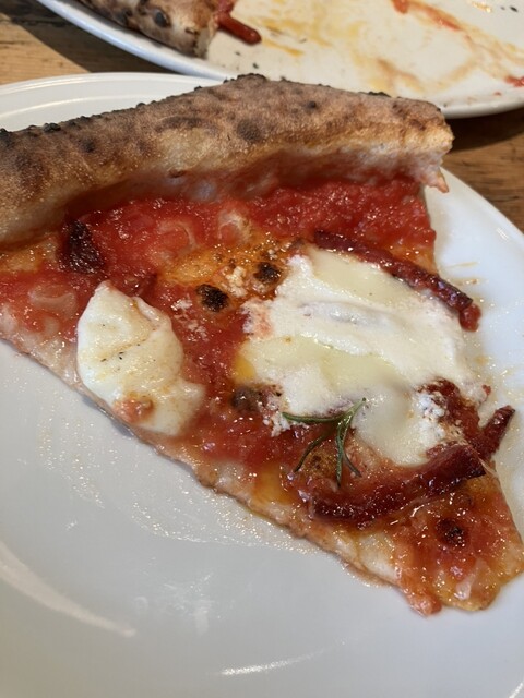 駅からほど近い人気店。ピッツァから「カンテラ」、パスタから「レモンサルシッチャとルッコラのクリームソース」、グラス白ワインから「ヴェルヴィッキオ クラシコ」、ソフトドリンクから「ライムとジンジャー」をチョイス!色合いも綺麗なワインは爽やかでフルーティー。喉越しも良く料理と合います。「ライムとジンジャー」は甘さ控えめ、爽快な味わいで暑い季節にぴったり。店名を冠したピッツァはトマトソースベースでモッツァレラ、イベリコ豚のチョリソー、ローズマリー、リコッタをトッピングした逸品。とても食べ応えのあるバランスの良さとスッキリした味わいがグッド!パスタはレモンとハーブ風味のクリームソースで爽やかな印象。サルシッチャはハーブ風味の豚の挽肉のこと。優しいクリームにイベリコ豚の風味が加わって深みを感じられる味わい。酸味と苦味がサッパリ感をアップ。ルッコラの食感と味わいがフレッシュ感を楽しめます。店内はお洒落な雰囲気でテーブル席とカウンター席があります。カウンターの奥には白い綺麗な魚鱗模様のピッツァ窯が眺められます。ワインを楽しみながらゆっくりとピッツァとパスタを堪能することができました。