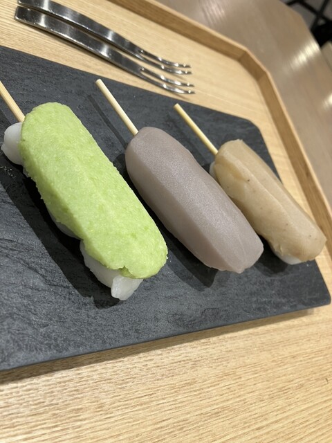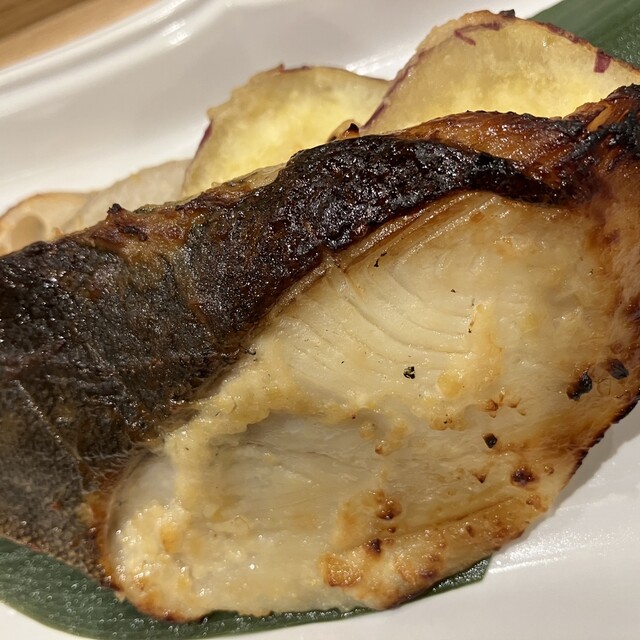 日比谷の中心、東京ミッドタウン日比谷1Fにあるラグジュアリー感溢れるお店。「銀鱈と旬の根菜 酒粕西京焼き定食」と「塩角煮と旬の野菜のせいろ蒸し定食」、ドリンクでコーヒーとアイスコーヒー、デザートで「日比谷 五街道団子 3種」をチョイス!団子は5種類(抹茶餡:東海道・静岡、栗餡:中山道・長野、いちご餡:日光街道・栃木、赤ワイン餡:甲州街道・甲府、ずんだ餡:奥州街道・宮城)から選べて、栗、赤ワイン、ずんだをチョイス!銀鱈の西京焼きは香ばしさとまろやかな味わいが楽しめる絶品。根菜はさつまいもと蓮根の素揚げの甘さと酒粕の甘さの中に食材の良さを感じるられます。赤だし味噌汁と香の物のたくわん、きゅうり、白菜が懐かしい日本らしさを醸しています。せいろ蒸しは塩角煮の柔らかな食感と豚の甘みの中にあっさりした印象が伝わります。茗荷、インゲン、ジャガイモ、青ネギは野菜の自然な甘みと食感を楽しめます。コーヒーとアイスコーヒーは浅煎りのスッキリした味わいで香りを楽しめます。五街道団子は甘さ控えめでそれぞれの餡の違いを楽しめます。赤ワイン餡は香り豊かで独特の味わいがグッド。店内は日比谷の中心という立地とLEXUSのブランドコンセプトに通じるスタイリッシュ感に溢れていて、広く、快適な空間での格別な料理を堪能することができます。入り口には歴代のトヨタ車のエンブレムが飾られていて楽しめます。ゆっくりと寛ぐことができました。