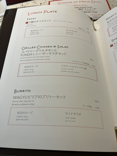 駅から少し歩いたグランベルスクエア 2Fのメキシコ料理の人気店。ランチプレートで「WAGYUビリアのブリトーセット」と「大海老のシトラスクリーム“モスキートス”セット」、ランチドリンクでジンジャエールと自家製ハイビスカスジュースをチョイス!どちらも「本日のスープ」とサイドサラダが付きます。スープはピリ辛のトマトの冷製スープ。スッキリした味わい。WAGYUビリアのブリトーは、メキシカンビーフシチュー「ビリア」とチーズ、スピナッチライスとブラックビーンズという内容でかなりボリューミー。頭皮に汗かくサルサの辛味がグッド!アボガドのソースがマイルド感を添えてくれます。大海老のシトラスクリーム“モスキートス”は、大海老を濃厚でシトラスの酸味のあるピリ辛味のソースで仕上げた絶品。ほうれん草のグリーンのライスとライムが添えられています。ボリューミーで満足度アップ!ジンジャエールはパンチの効いたジンジャーのスッキリとした爽やかな味わい。ハイビスカスジュースは綺麗な色味と酸味を楽しめます。店内はカウンター席とテーブル席があり、お洒落な雰囲気の中にも楽しさの伝わる空間。BGMはエア・サプライとジャミロクワイ。カウンター席は、独特なテキーラの瓶のデザインを間近に眺められて楽しさアップ。愉快な空間で美味しい料理を堪能できました。