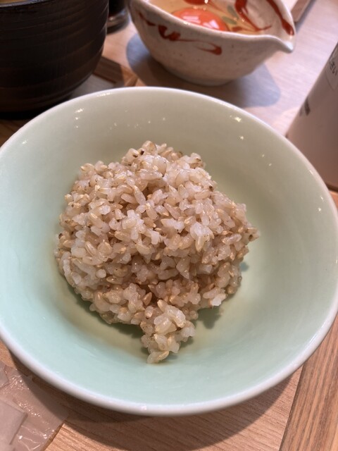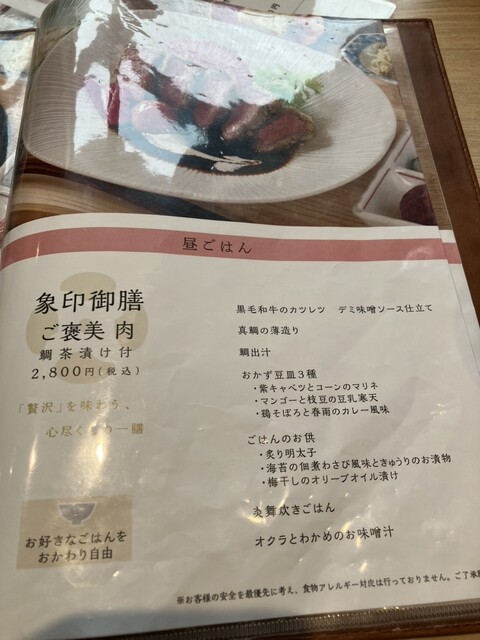 駅からすぐのKITTE丸の内 5Fにある超人気店。「象印御膳 肉 鯛茶漬け付」と「象印御膳 鯛茶漬け付 鶏肉の塩麹唐揚げ しそジェノベーゼソースで」、「大分県産 龍の卵」と「お米アイス」をチョイス!どちらの御膳にもおかず豆皿3種(紫キャベツとコーンのマリネ/マンゴーと枝豆の豆乳寒天/鶏そぼろと春雨のカレー風味)とごはんのお供(炙り明太子/海苔の佃煮わさび風味ときゅうりのお漬物/梅干しのオリーブオイル漬け)、「炎舞炊きごはん」、「オクラとわかめのお味噌汁」が付きます。ごはんは象印マホービンが手がける炊飯ジャー「炎舞炊き」で炊いた3種類のごはん(白米「ふつう」/白米「しゃっきり」/健康応援米)を味比べできます。ごはんを食べてもらうことがコンセプトのお店なので、主菜もおかずも全てが最高レベル!卵かけご飯は至高の味わい。ご飯の盛りは、普通、少なめ、大盛りなど細かく対応してもらえます。鯛茶漬けを堪能するまでに全種類のおかわり必至です。お腹一杯ご飯を食べる醍醐味と満足感を大いに味わえます。ごますり器やステンレスタンブラーも象印製品が試せます。ゆっくりと美味しいごはんを心ゆくまで楽しめました。