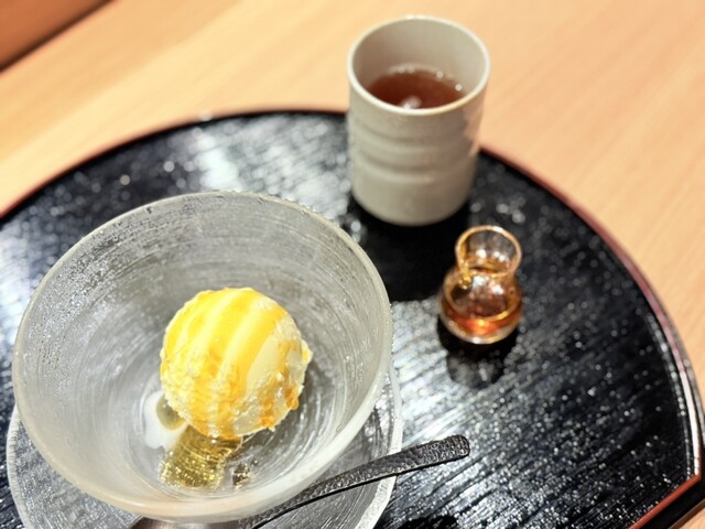 日本酒を使ったキャラメルソースをかけていただくバニラアイス。
