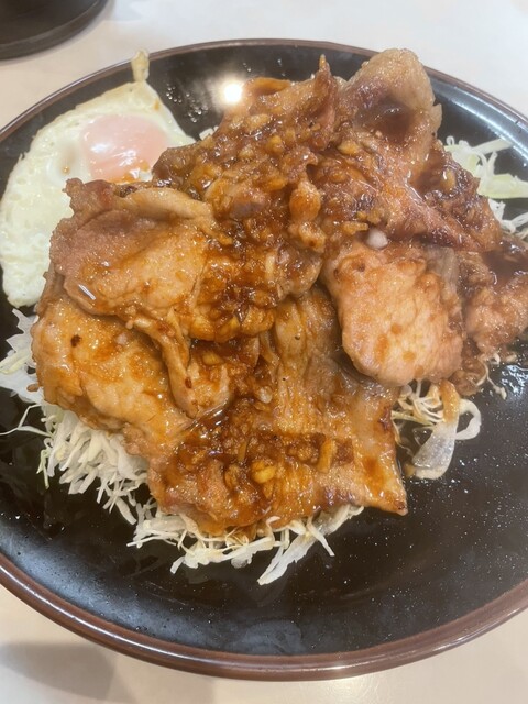 いや〜香りからかなりいい!一口食べたらお肉がとにかく柔らかい!しょうが焼きのタレ自体がかなり濃厚なお味だし、決してお腹が空いていたわけでもないのに箸が止まらん(о´∀`о)何気に半熟の目玉焼きも嬉しかったし、熱々の豚汁も締めとして最高でした。