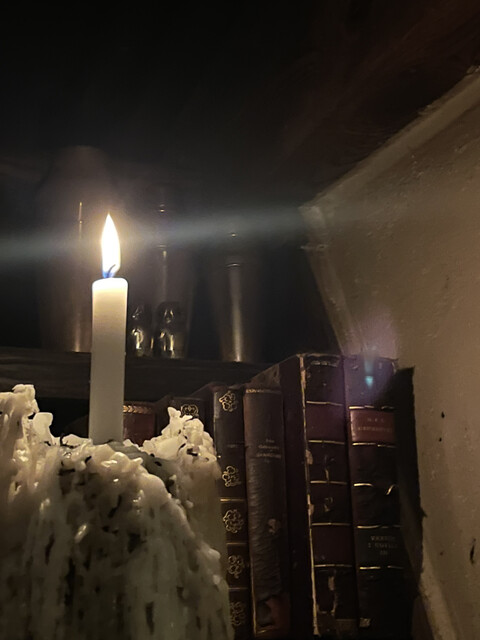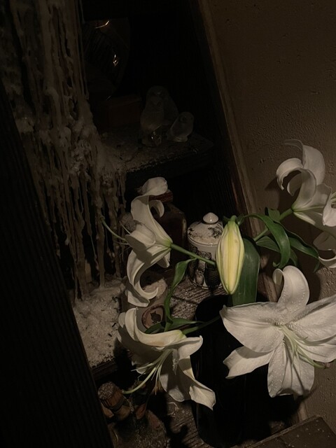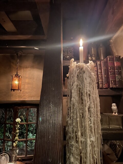 パイプオルガンのような音響が響き渡る、暗めで雰囲気のある空間に、一輪挿しのお花がカウンターに飾られていて、いたるところにフクロウのモチーフが!