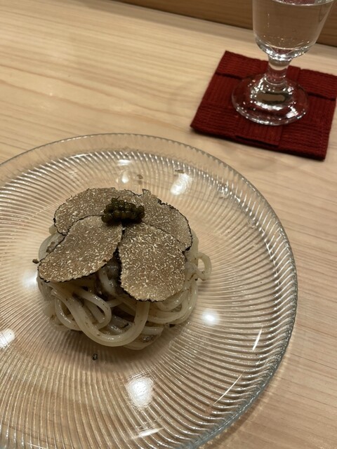 海外の贅沢な素材と日本の和麺の美味しすぎる一品で、正直ここがお鮨屋さんだという事を一瞬忘れます。泣くほど美味しい。。。