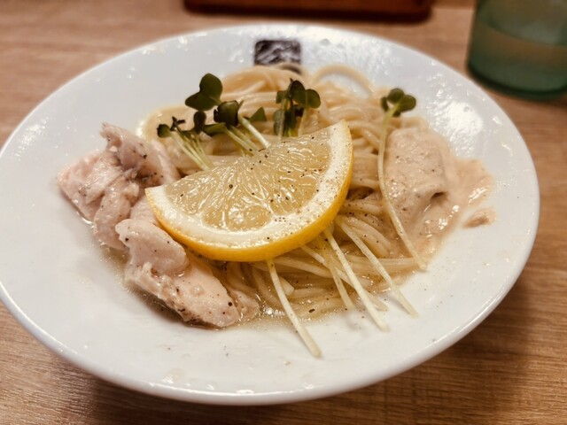和え玉は本店と同じメニューかな。濃厚なポルチーニソースとレモンの清涼感がマッチしてて、お腹いっぱいでもスルッと平らげてしまいました。