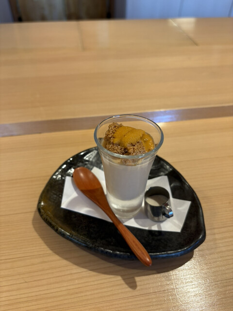 まずはそのままいただき、雲丹の新鮮とプリンの絶妙なマッチを楽しみます