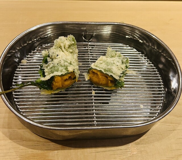 オーダーは夜の天ぷら定食に雲丹や蓮根を追加で