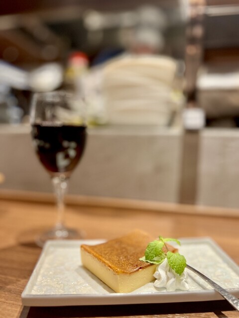 そしてデザートには、自家製のバスクチーズケーキ。しっとり濃厚でありながら、表面のほろ苦さが全体を引き締め、和のコースの締めくくりとして見事に成立しています。