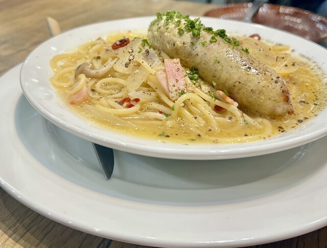 さて、今回、私が選んだのは+500円で少し贅沢な自家製サルシッチャ。まずは登場した時のその量に歓喜の声がw大盛りは無料との事でしたが、大盛りにしなくて良かった〜と思わず声が出るほど。