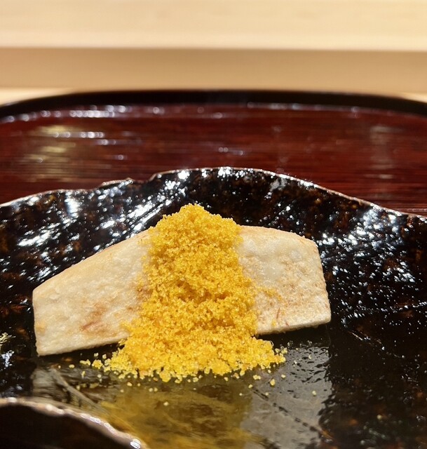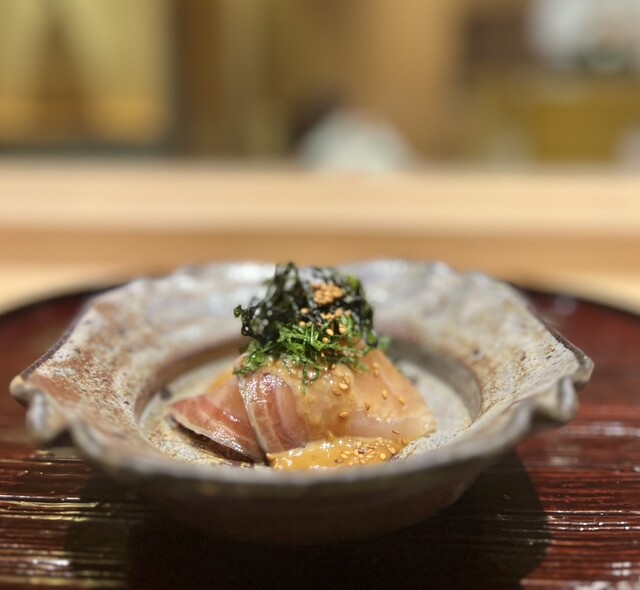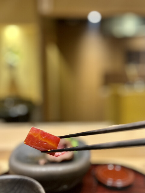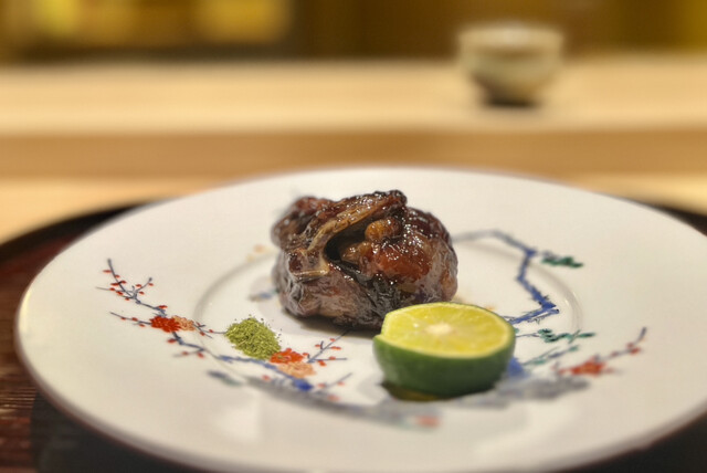 大将はいかにも職人気質とは真逆でとても楽しく柔らかで印象的な方。料理の説明も難しい言葉は使わず、こちらが自然に理解できるように話してくださいます。所作も美しく、火入れや盛り付けの一つひとつに無駄がありません。決して派手ではありませんが、場の空気をつくるのがとても上手で、自然と引き込まれていきます。料理人でありながら、まさにエンターテイナーと呼びたくなる存在です。