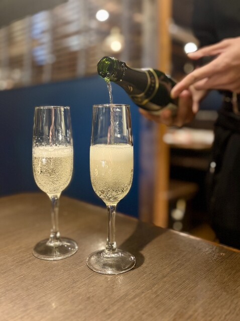 まずはスパークリングで乾杯の後、赤ワイン、そして日本酒もウリとのことで この日はお店おすすめの飛露喜をありがたくいただきました。