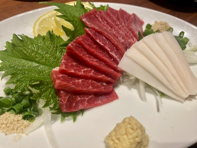 鶏モモのたたきはあっさりとした味わいで、ぱくぱくと食べ続けてしまう...