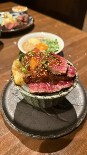 お肉とご飯に乗せて卵黄ON