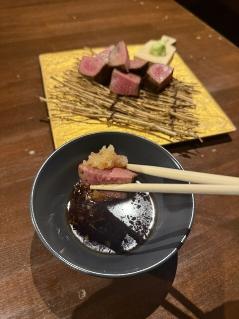 ダンディーな店主さんがお肉を焼いてくださり、フランベ、カットして丁寧に盛り付けを全て目の前でしてくださる嬉しいサービス付き