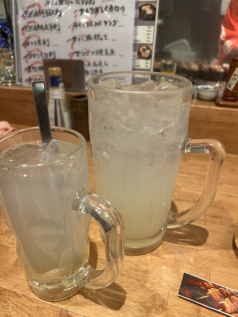 カマンベールチーズとネギマとちょうちんも注文。メガサイズのレモンサワーはかなり大きいです。ごちそうさまでした。
