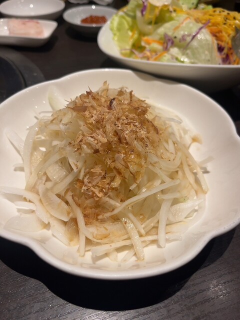 今回は玉ねぎスライス、チシャ菜と、お肉を赤身5種とハラミ3種、焼きしゃぶにニンニク食べました。