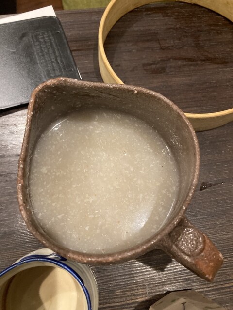 本わさびと塩、醤油がついているが、蕎麦の香りを楽しむなら塩がおすすめみたい。そのまま食べても蕎麦を感じて美味しかった。もっちりとしているので箸やスプーンをすすぐ為の水が付いていました。
