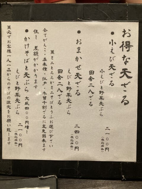 【おまかせ天ざる】2,400円 こちらは小鉢が選べます(ミニそば豆腐orミニとろろ)写真はミニそば豆腐
