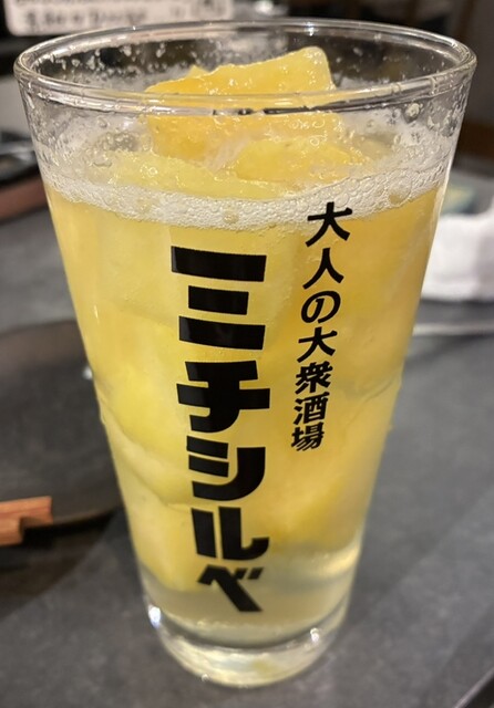 【極みりんごサワー】凍ったりんごが入ってる。お得な「おかわり」も出来る
