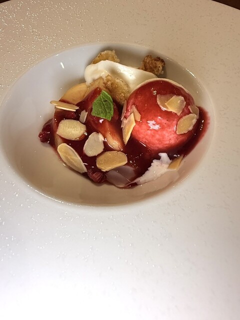 白くきめ細やかな泡に、アプリコットやリンゴの蜜の芳醇な香りが広がります。口当たりはソフトで、フルーツの豊かな風味とマシュマロのような柔らかな甘み、繊細なミネラル感が一体となり、アミューズの旨味をより一層引き立ててくれました。