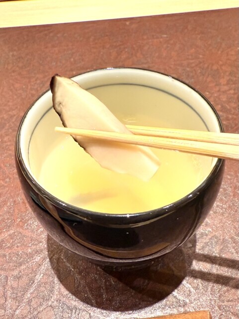 名物の茶碗蒸しは、はまぐり40個・しじみ2kg・干しほたて60個から取った出汁を3日間寝かせたもの。具を入れず、貝の旨みだけで仕上げた究極の一品。お出汁を味わう究極の茶碗蒸しですね。
